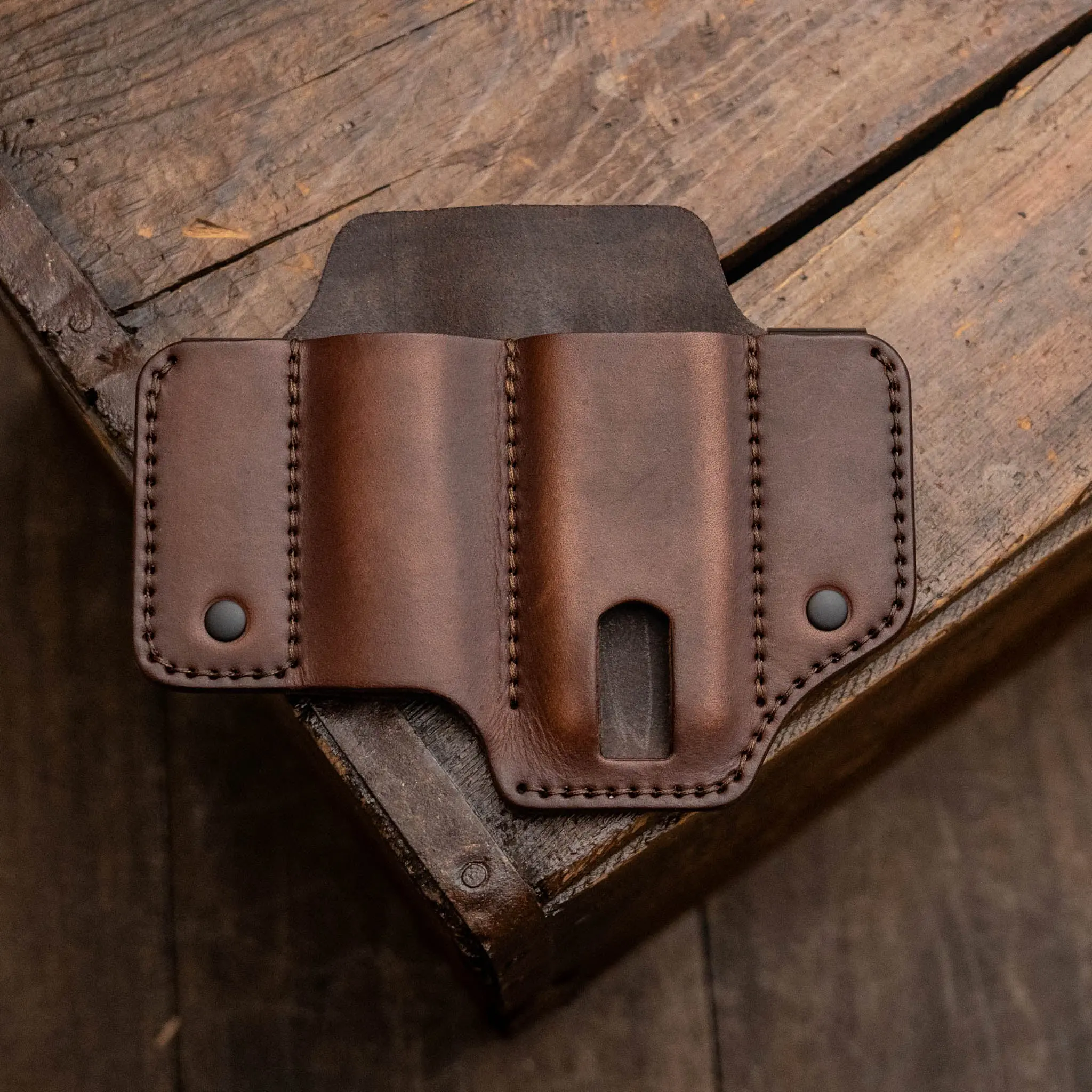 From the Maker: The BASIC items are not accented with additional stitching in order to provide a more affordable option. Handcrafted leather gear made using traditional methods, Wickett and Craig Full Grain Leather, straight from a family owned and crafted small business. Listing is for leather gear only, NO tools/accessories included.