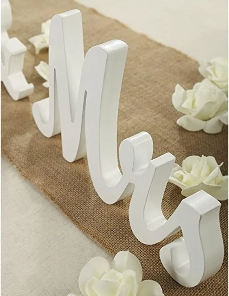 【Perfect Size】"Mr" size: 10 x 5.9x 3/4 inch, "Mrs" size: 12.2 x 5.9 x 3/4 inch, "&" size: 4.3 x 4.7 x 3/4 inch, create an elegance and romantic atmosphere while using.