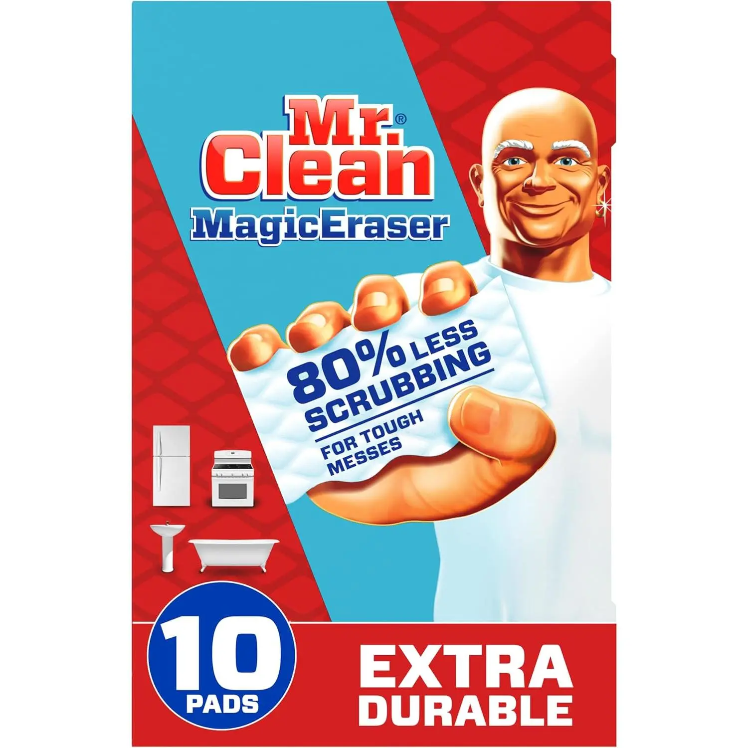 ·EXTRA DURABLE SCRUBBER: Mr. Clean Magic Eraser Extra Durable scrubber is 5 times stronger. It requires 80% less scrubbing Cleaning performance vs. the leading all-purpose bleach spray