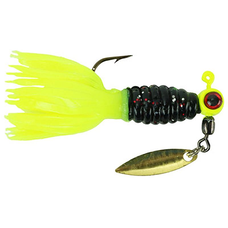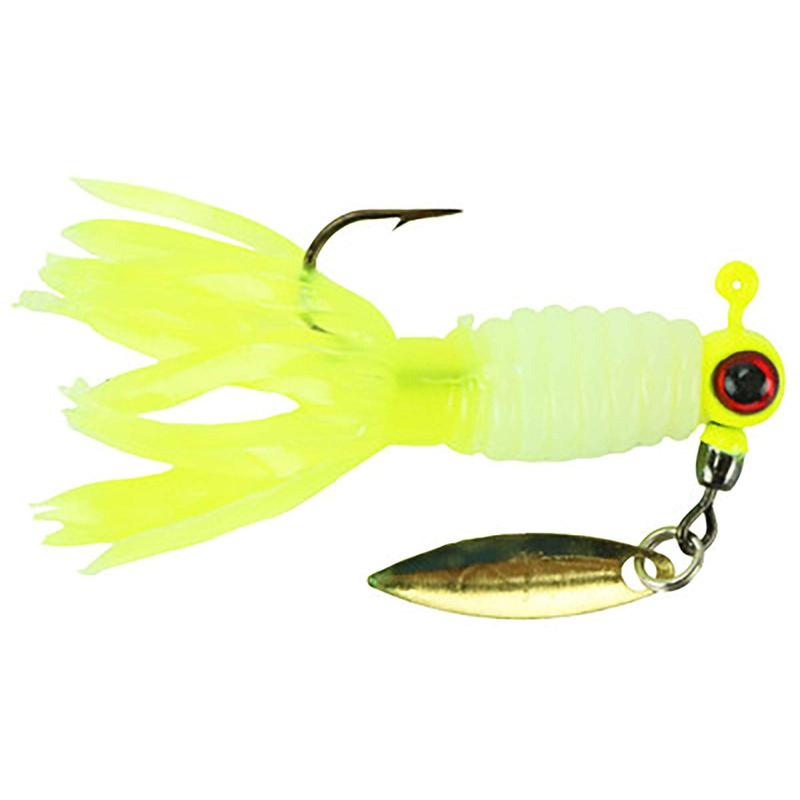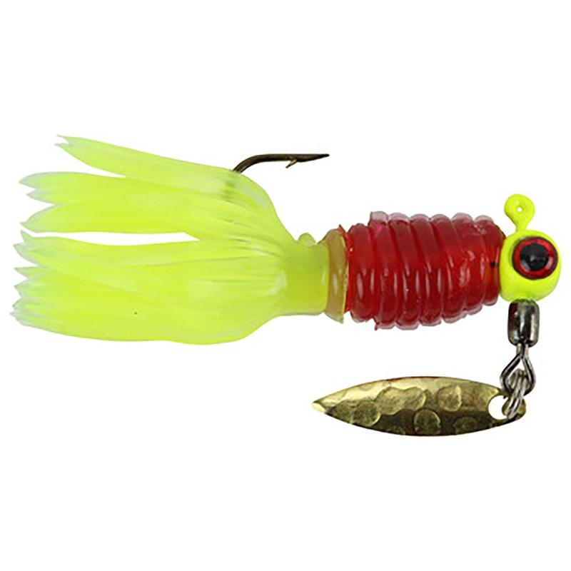 ·Available in a variety of color choices, 2 sizes; 1/16 oz and 1/8 oz, and in packs of 2, the Mr. Crappie Sausage Head Spin Jig Pre-Rigged W/Crappie Thunder is a great addition to your tackle box that guarantees success!