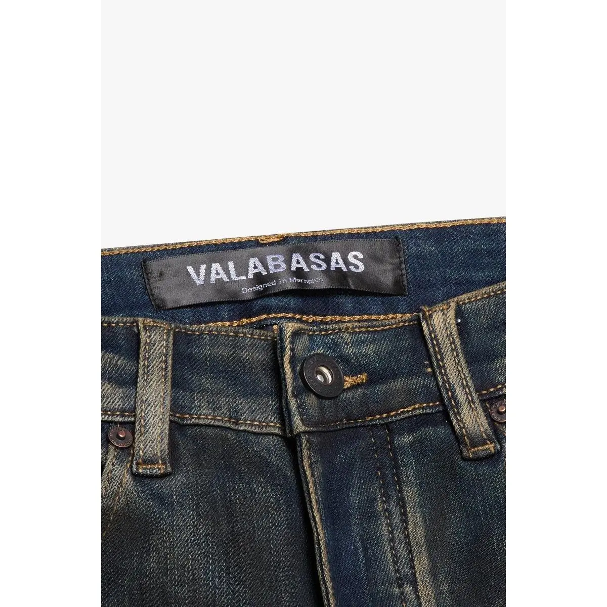·Details: Traditional five-pocket design, tonal stitching, zip fly with button closure, and Valabasas signature branding at the waistband.