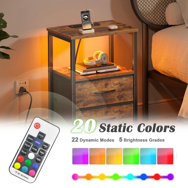·【Customizable LED Lighting】: Transform your bedroom ambiance with 22 modes, 7 static colors, and music sync options, making it a stylish LED nightstand that also serves as a night light.
