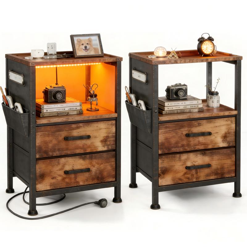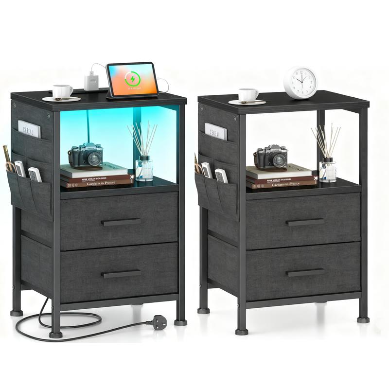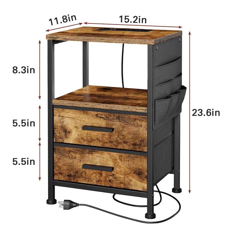 ·【Built-In Charging Station】Equipped with 2 USB ports and 2 AC outlets, this bedside table ensures effortless charging for your devices while eliminating messy cables.