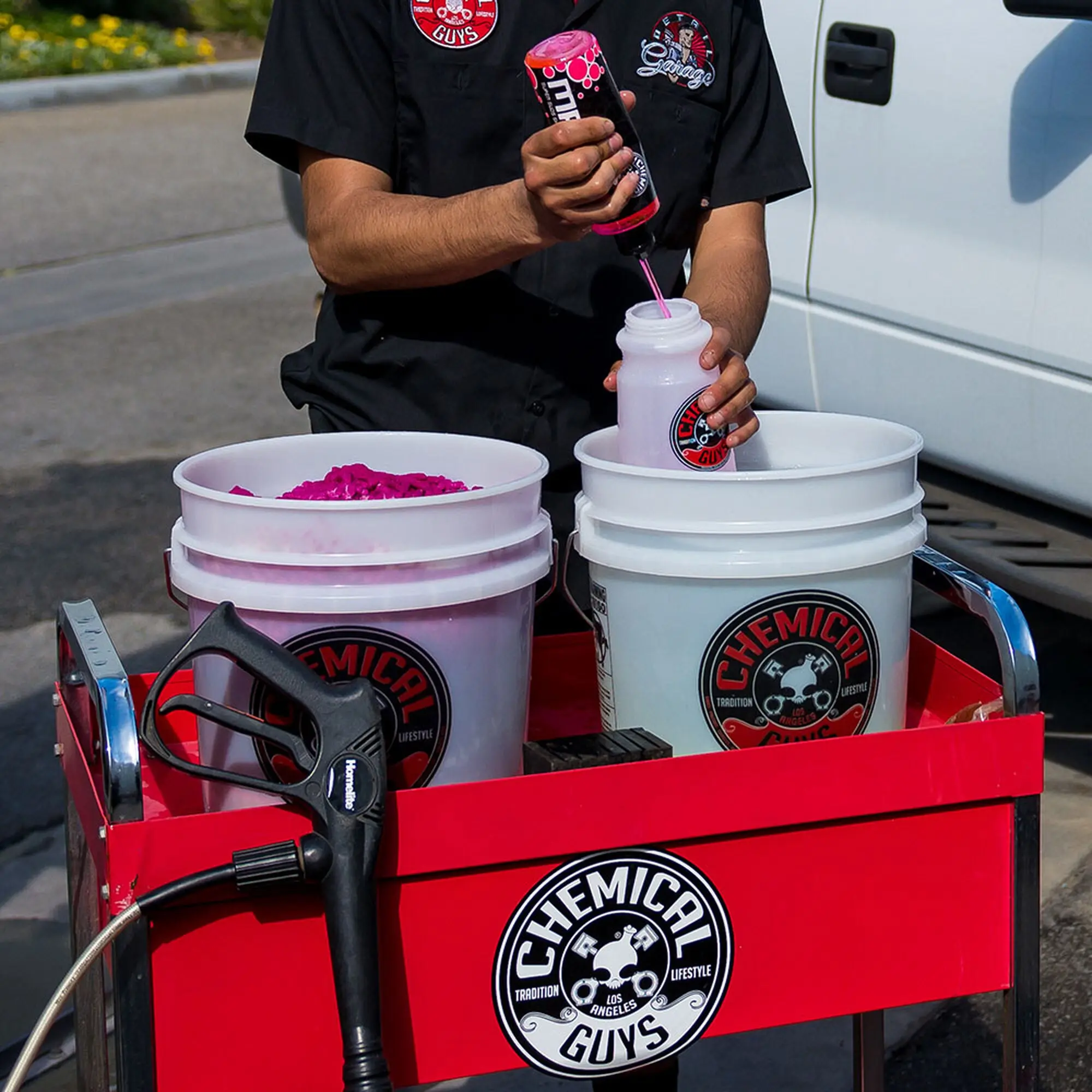 Other detailing shampoos and low-grade car wash soaps tend to be too strong, stripping wax off your vehicle’s surface while staining plastic and rubber parts. Mr. Pink is pH-balanced and gentle on all exterior automobile parts like paint, clear coat, polished metals, glass, and even vinyl, rubber, and plastic trim. Plus, it rinses clean after every wash, leaving behind no residue.