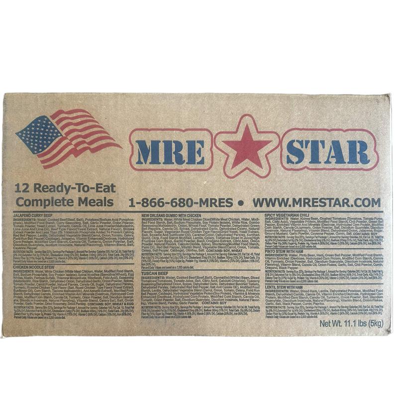 Looking for a good way to stock up on food? MREs are a great way to keep ready-to-eat food on hand for outdoor adventures or emergencies. This MRE case comes with twelve full meals. Each case comes with six varieties of entrees, two of each, making for a total of twelve meals per case.