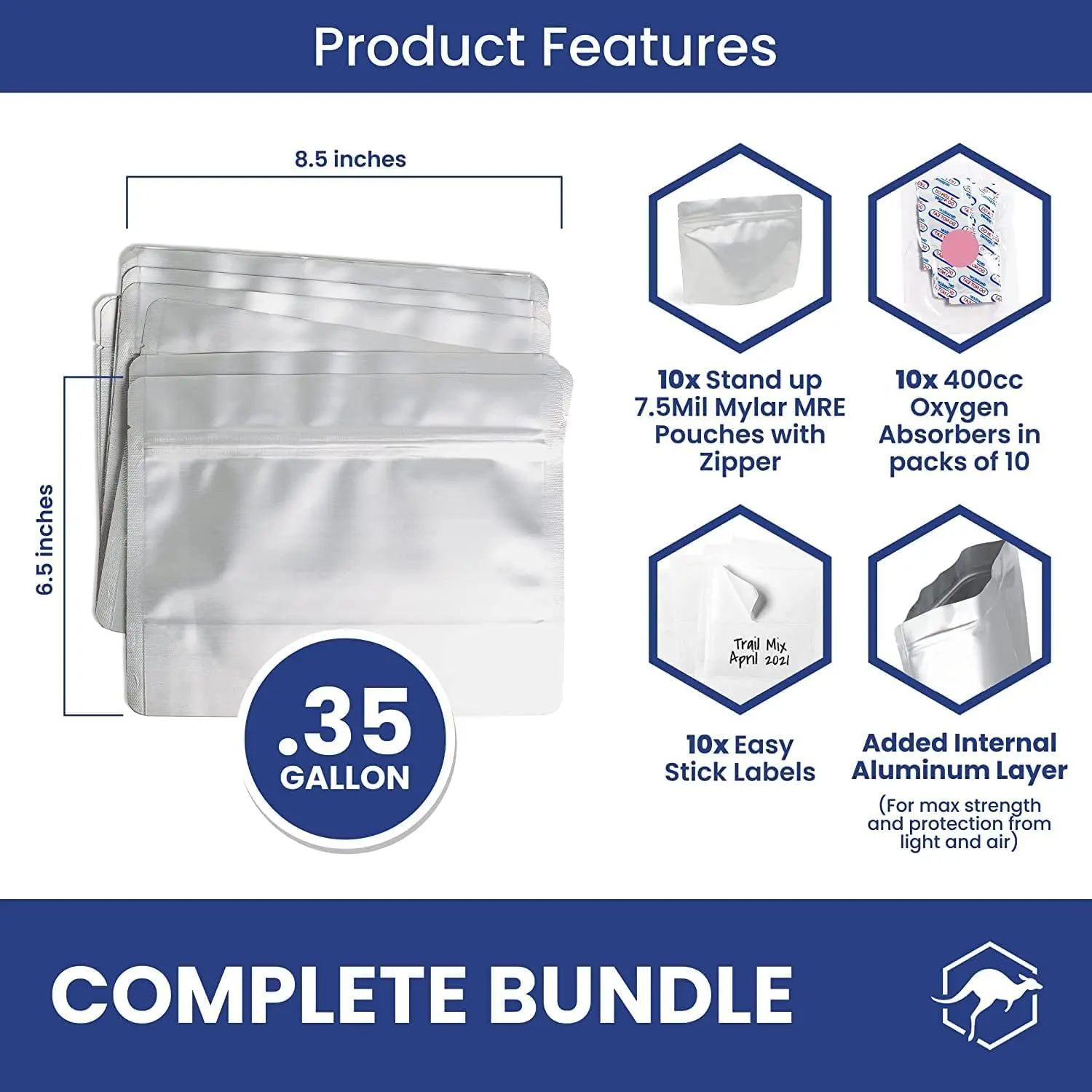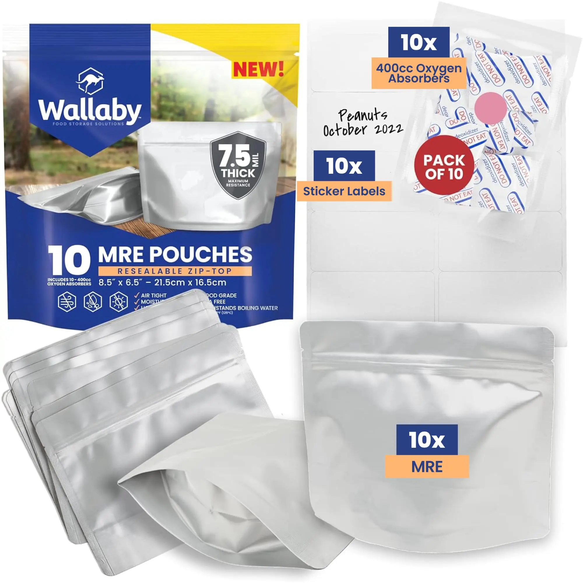 ·HOMEMADE SURVIVAL MEALS - Wallaby MRE bags allow you to assemble and store your own meals ready-to-eat. Avoid unhealthy additives and high costs of pre-packaged MRE or survival food kits and build your own instead. Includes bags and oxygen absorbers.