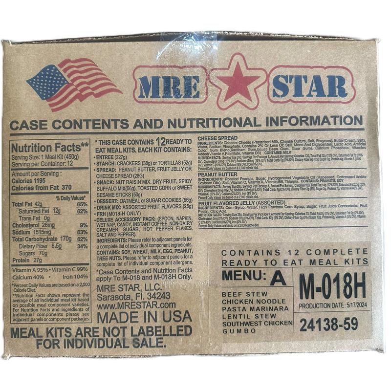 Product contains meat and allergies ingredients please check ingredients list & MRE STAR for more info