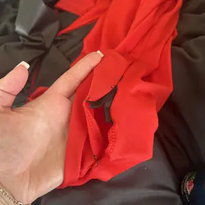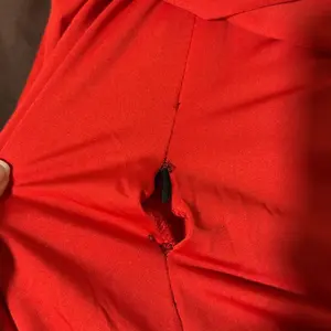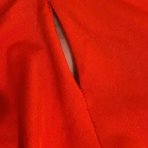 · Black fabric on collar and pants legs has shiny faux leather coating