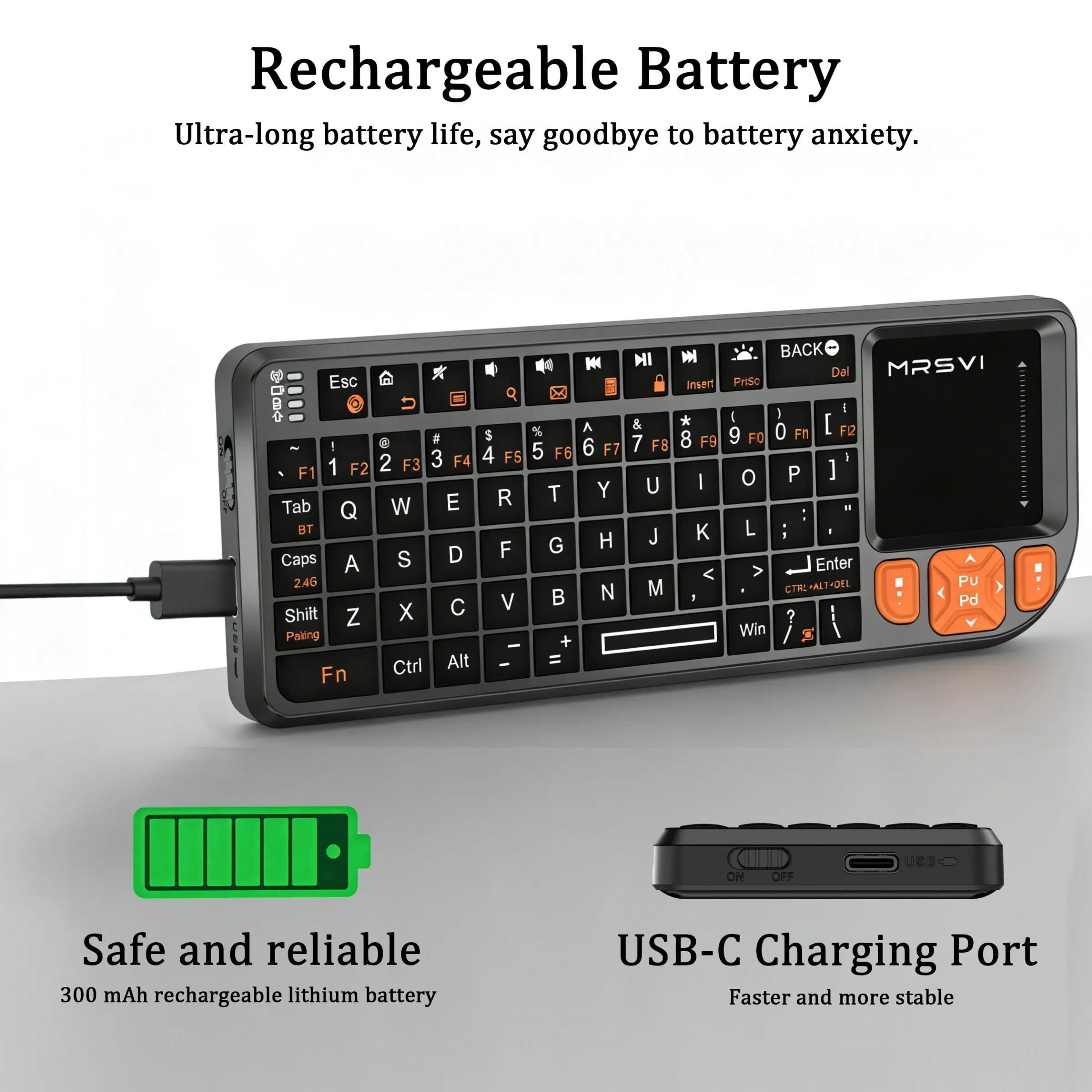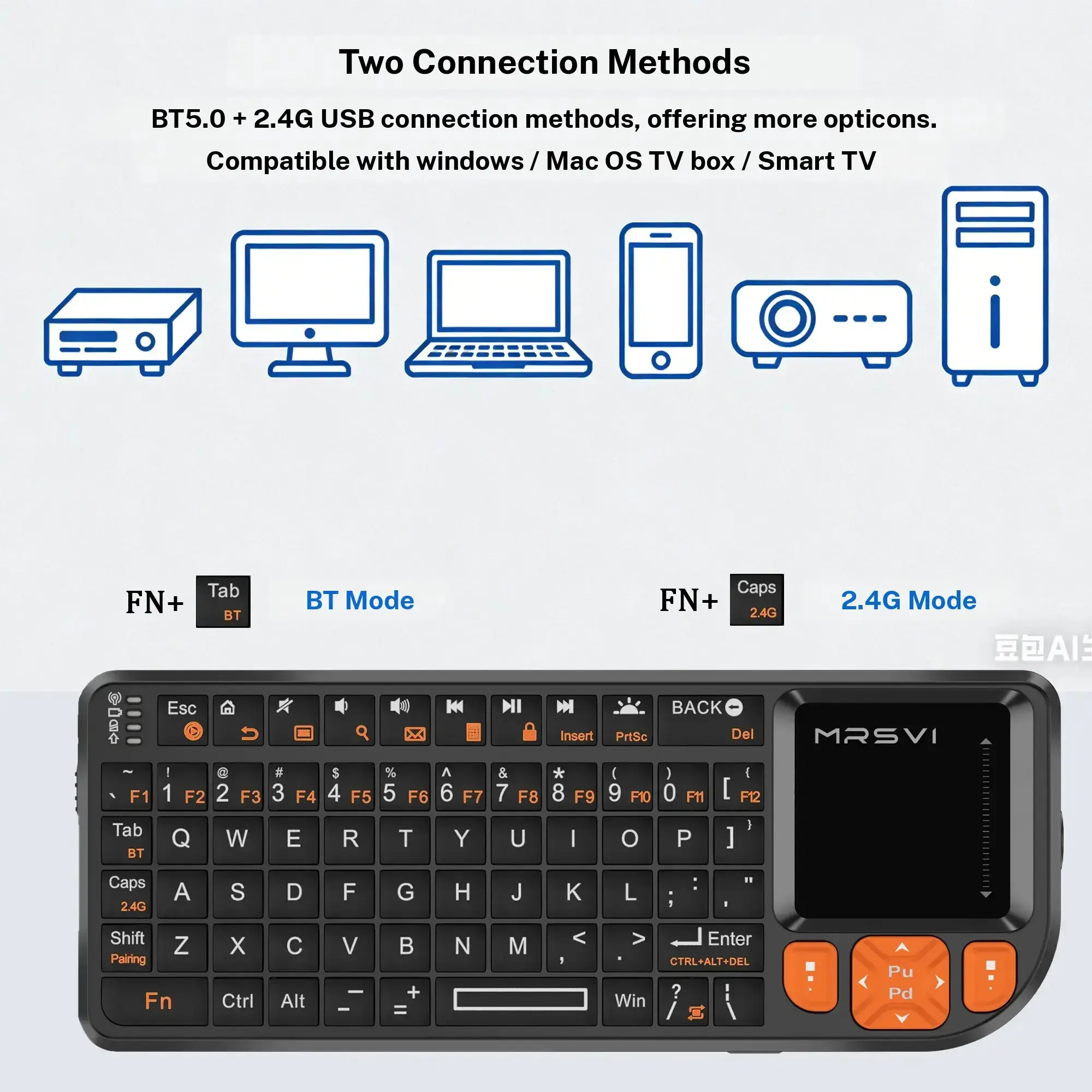 Mrsvi Bluetooth-compatible Mini Keyboard with Touchpad, Wireless Backlit Rechargeable Design, Compatible with PC, Smart TV, Projectors for Office & Home Use