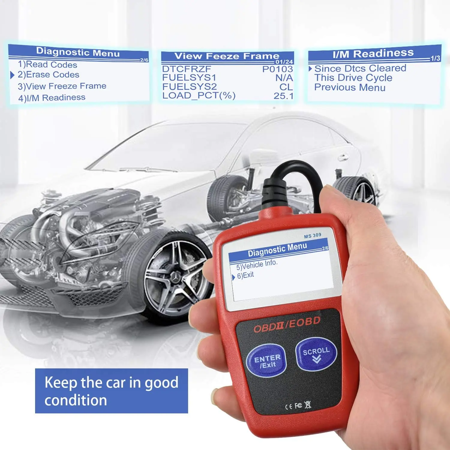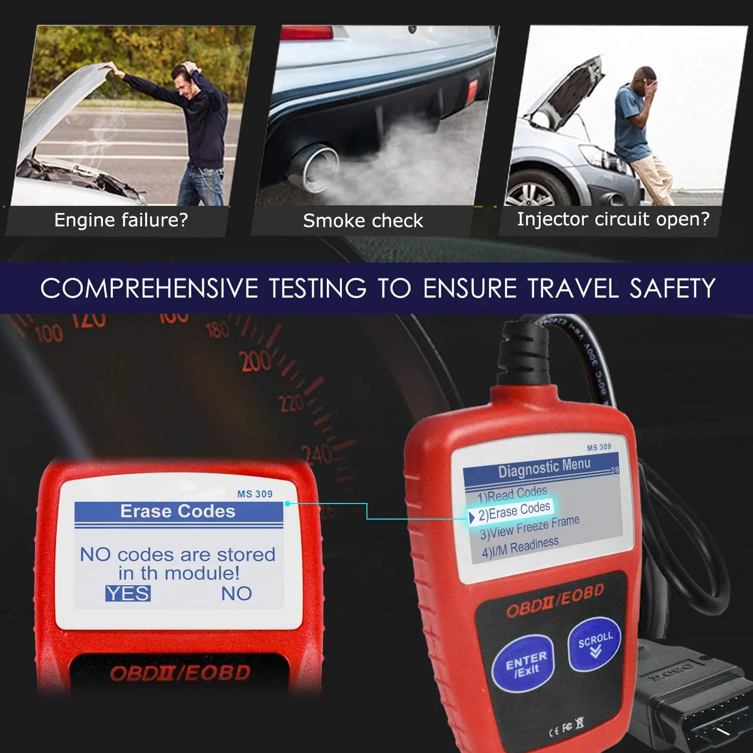MS309 OBD2 Scanner – Check Engine Light Code Reader, Read & Clear Codes, Freeze Frame Data, Universal OBDII CAN Diagnostic Tool