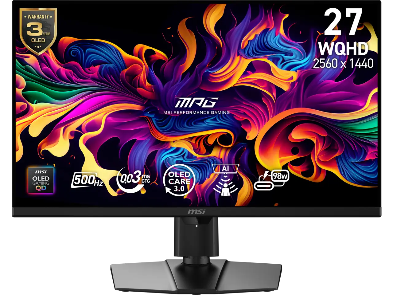 MSI 27" WQHD 2K 1440P 500Hz  0.03ms G-SYNC Compatible HDR500 USB-C OLED Gaming Computer Monitor for both PC and Console Gaming MPG 271QR QD-OLED X50