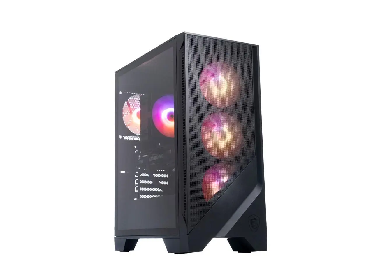 The new mesh-style front panel design drastically increases airflow to the system compared to previous generations. In addition, Frozr AI Cooling in MSI gaming desktops learns and predicts system temperature to adjust fan speed, ensuring peak performance in a low-noise environment with AI assistance.AI Engine, and Frozr AI CoolingThe new mesh-style front panel design drastically increases airflow to the system compared to previous generations. In addition, Frozr AI Cooling in MSI gaming desktops learns and predicts system temperature to adjust fan speed, ensuring peak performance in a low-noise environment with AI assistance.