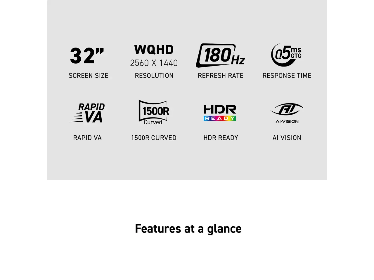 MSI 31.5" 180 Hz Rapid VA QHD(2560 x 1440) Gaming Monitor-180Hz, 0.50ms, Adaptive Sync VESA Mountable, MAG 321CQF E18
