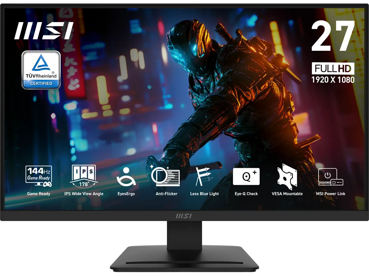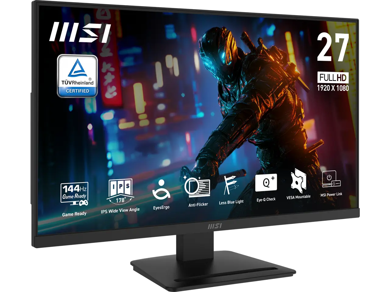 MSI PRO MP273L E14 27-inch IPS 1920 x 1080 (FHD) Gaming Office Monitor, 144Hz, Adaptive-Synch, HDR Ready, HDMI, VGA Port,VESA Mountable, Tilt, 4-side slim bezel ,1ms, Black