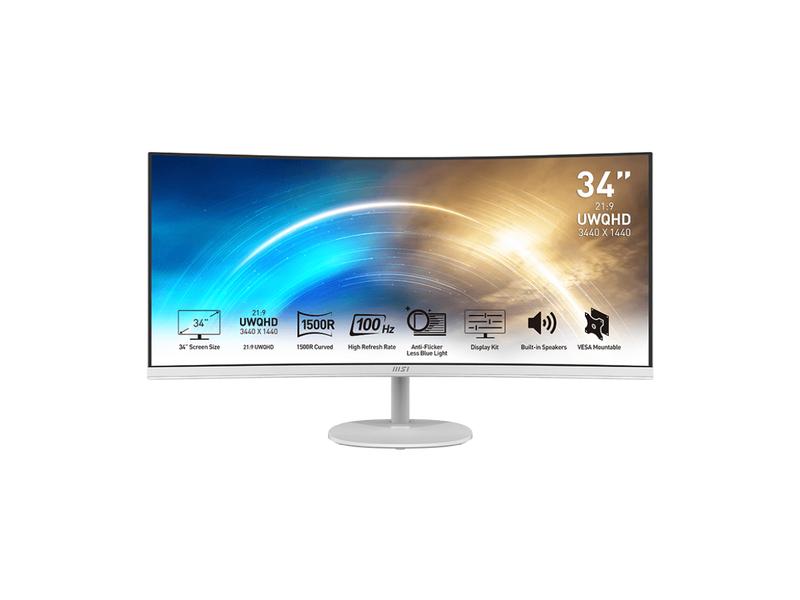 MSI Pro MP341CQW 34" UWQHD 3440 x 1440 (2K) 100 Hz 1ms (MPRT) / 4ms (GTG) Built-in Speakers Curved monitor