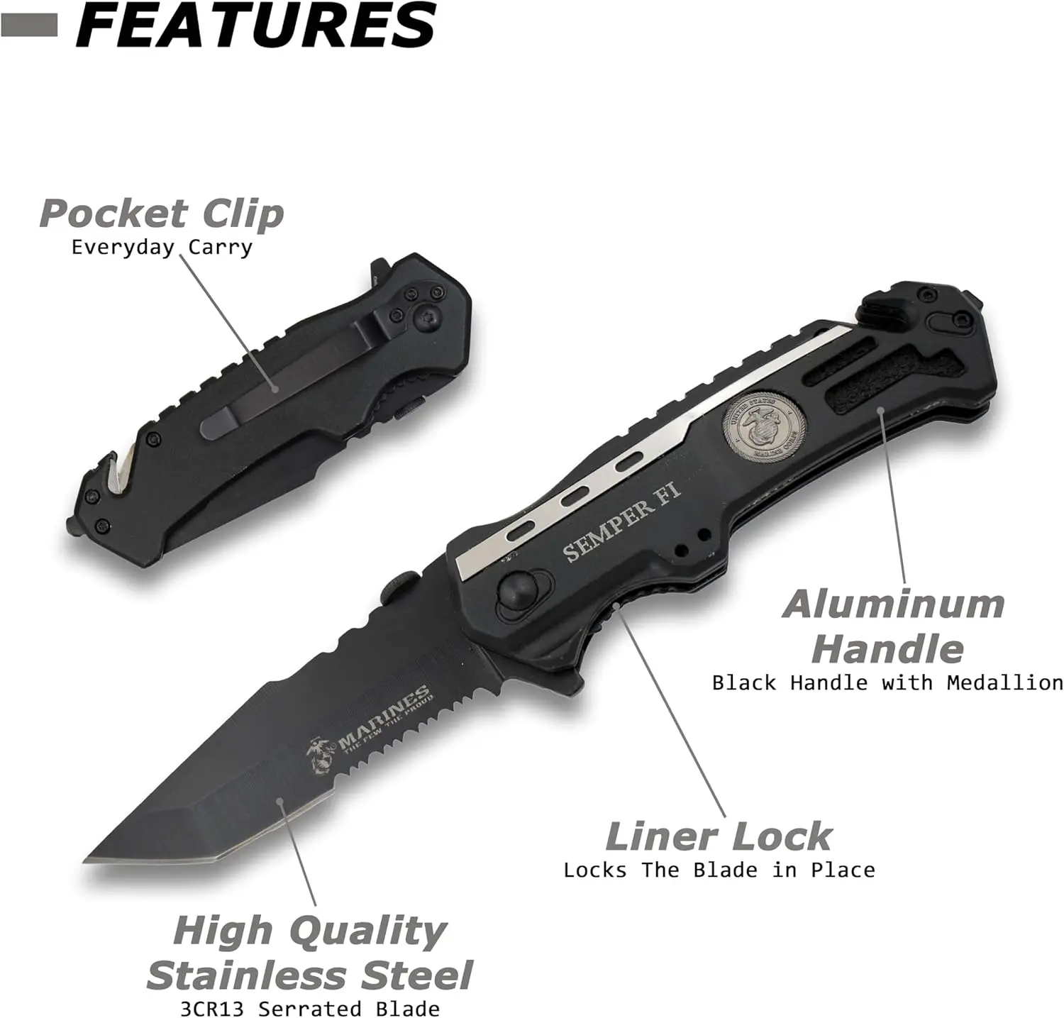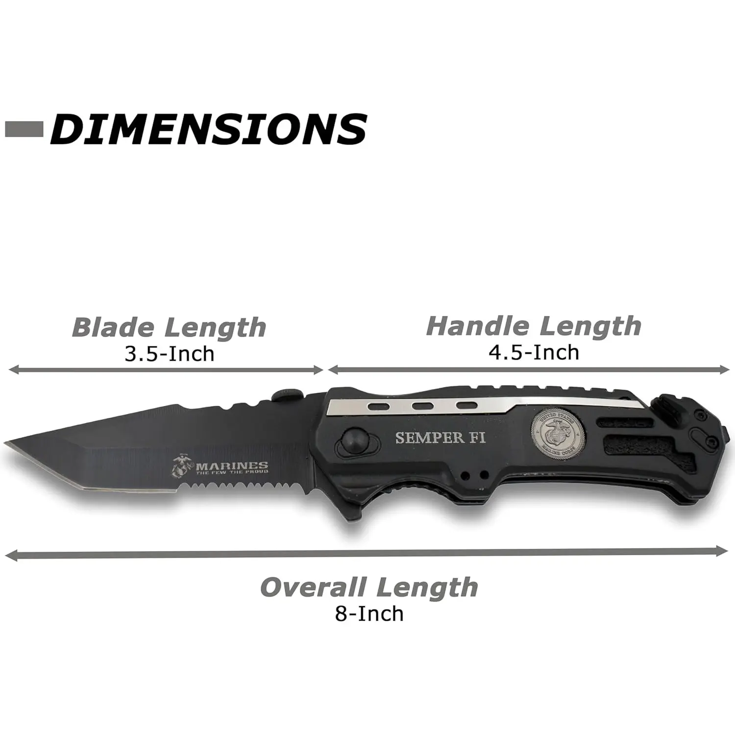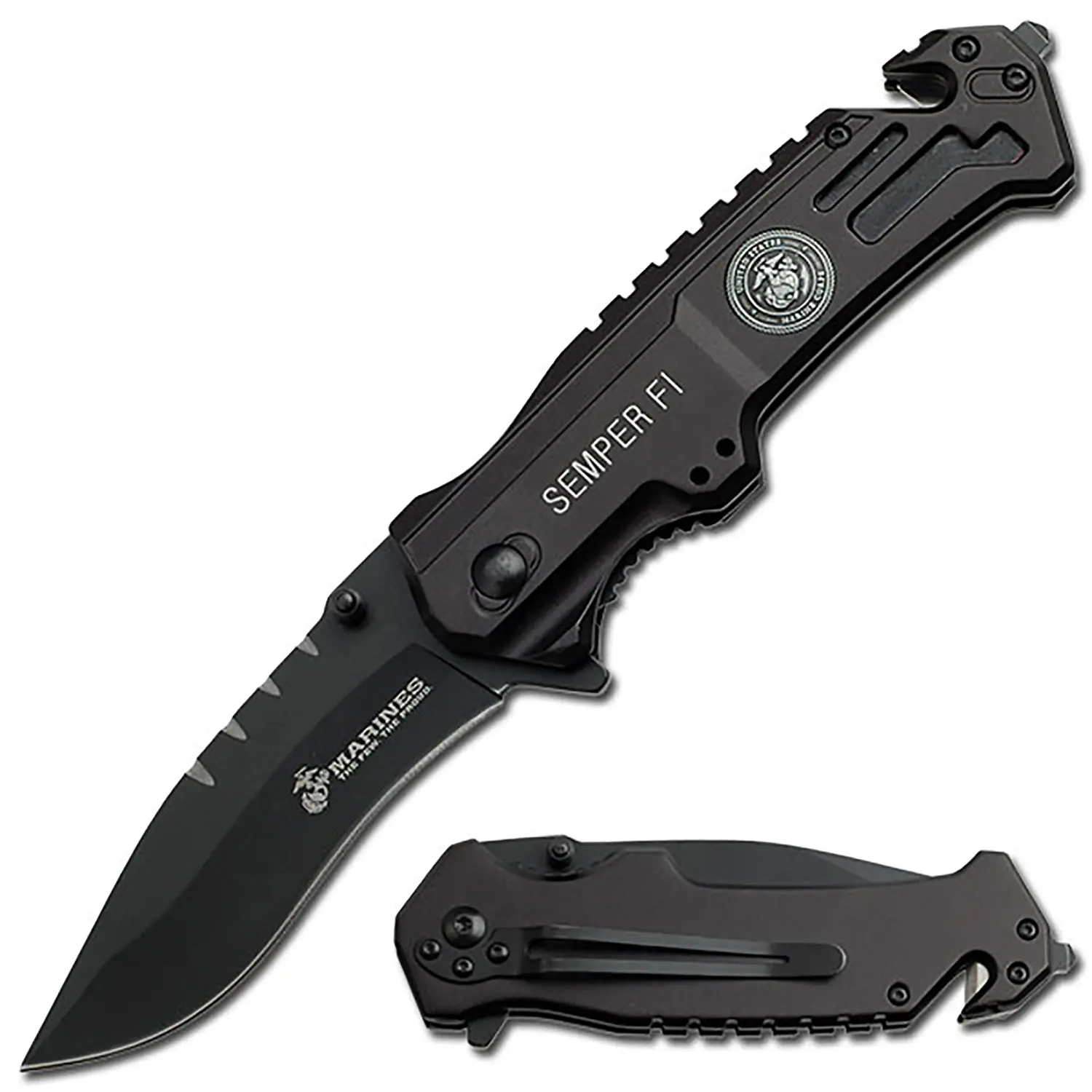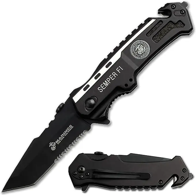 Beautiful crafted knife dedicated to the USA MARINE CORPS, this is my second purchase it has survival tools for city living.