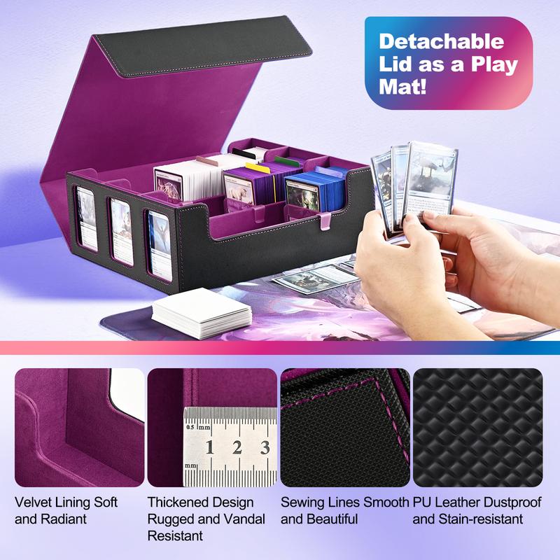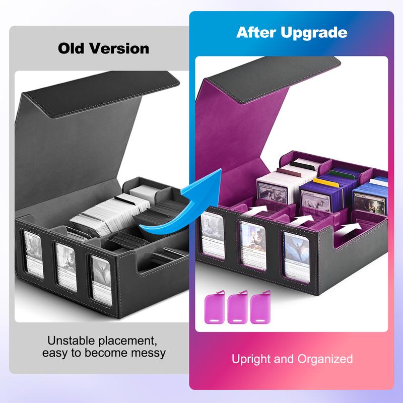 【Efficient Card Organization】The trading card storage box comes with 10 Mixed color partitions、3 Blue partition clips and 3 Commander Display Windows, ensuring cards remain upright and aiding in perfect card organization. The robust magnetic closure design ensures the card deck box remains tightly closed, even when overturned, guaranteeing the safety of your cards without any damage.