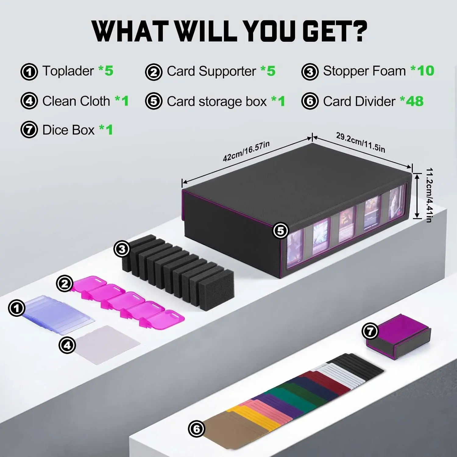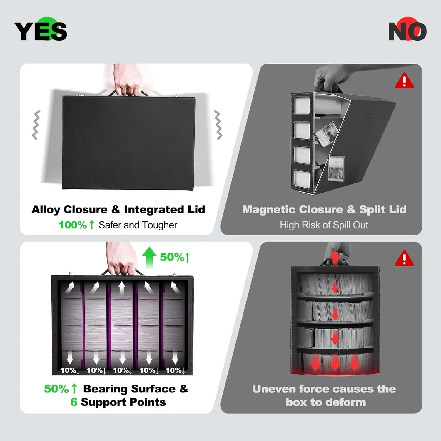 ·【Super Large Capacity】This is not a simple card storage box, but the Noah's Ark of trading card civilization. While rivals drown in card chaos, your black lotus, blue eyes, shining dragon rest in armored chambers, await glory. ZLCA 5 row card storage box with handle can easily hold 3900+ unsleeved cards, 1800+ double-sleeved cards and 800+ toploader.