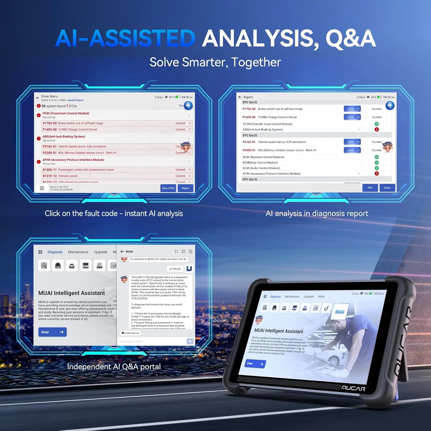This scanner is ideal for automotive diagnostics. Suitable for professionals and DIY users. The MUCAR AI aid ensures a comprehensive and accurate diagnosis.