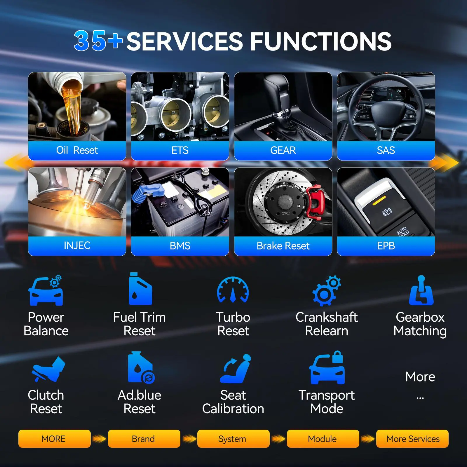 ·Bidirectional OBD2: Supports diagnosis for thorough analysis.