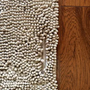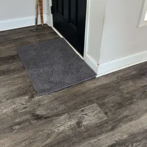 I use the above Midnight Blue rug under the dog bowl. The below images, show the Beige rug at the door.