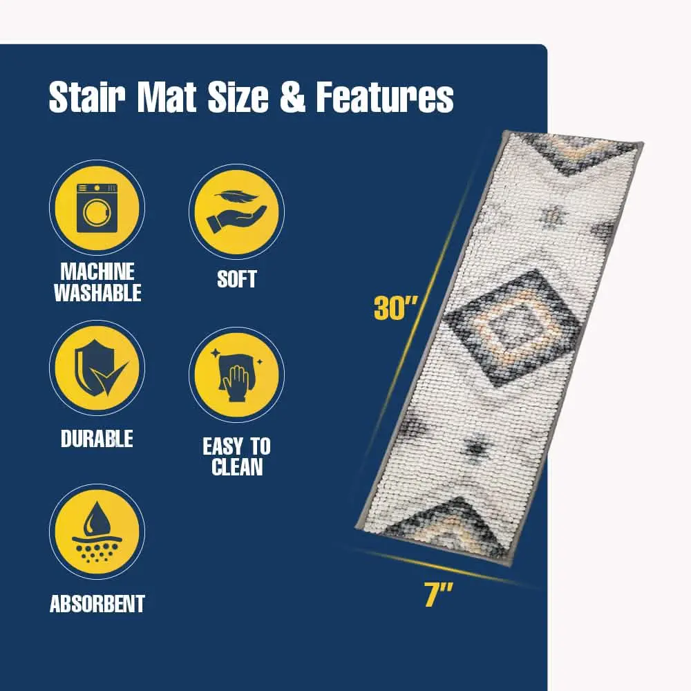 ·Ultimate Non-Slip Stair Solution: Transform your stairs with Muddy Mat Soft Chenille Stair Treads, featuring a high-quality non-slip backing that keeps them securely in place. Acting as a reliable stair runner, these treads are perfect as non slip stair treads for indoor use, providing exceptional traction on any surface. Whether you need stairs carpet non slip protection for wooden, tile, or marble steps, our treads prevent slips and falls, ensuring your home is safer and more comfortable.