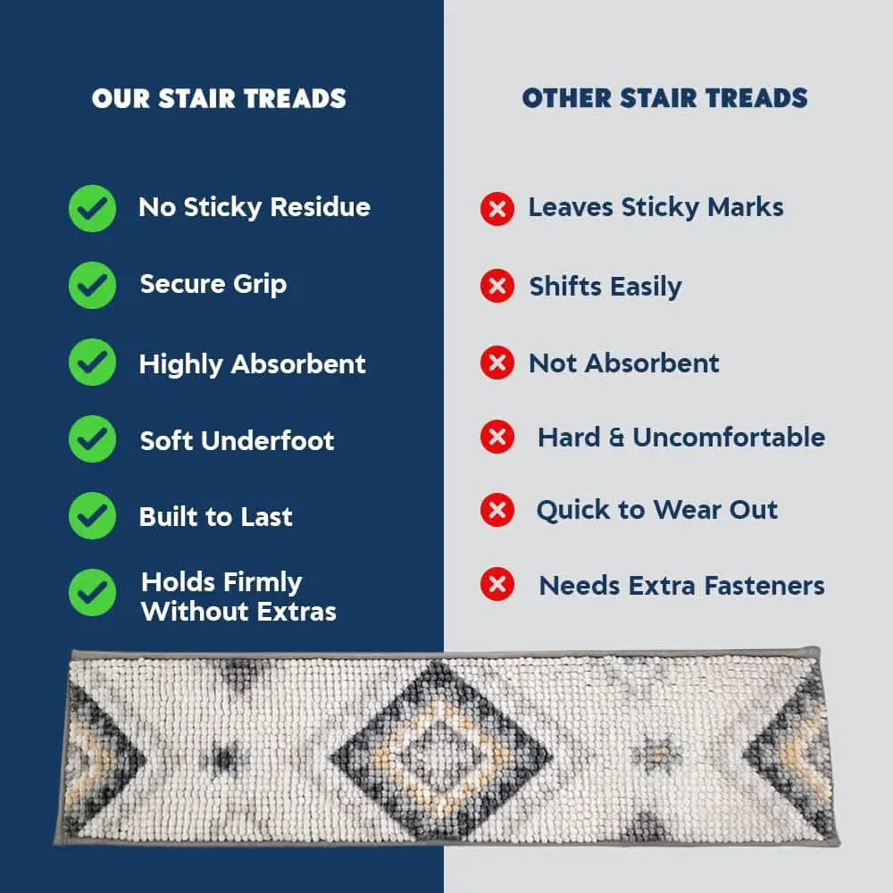·Super Absorbent & Comfort Underfoot: Experience the luxurious feel of our soft chenille material with Muddy Mat carpet stair treads. Not only do they provide a plush, comfortable step, but they also act as an absorbent carpet for stairs, soaking up moisture and dirt with ease. These treads double as anti slip stair strips, combining comfort with functionality to keep your stairs clean and safe.