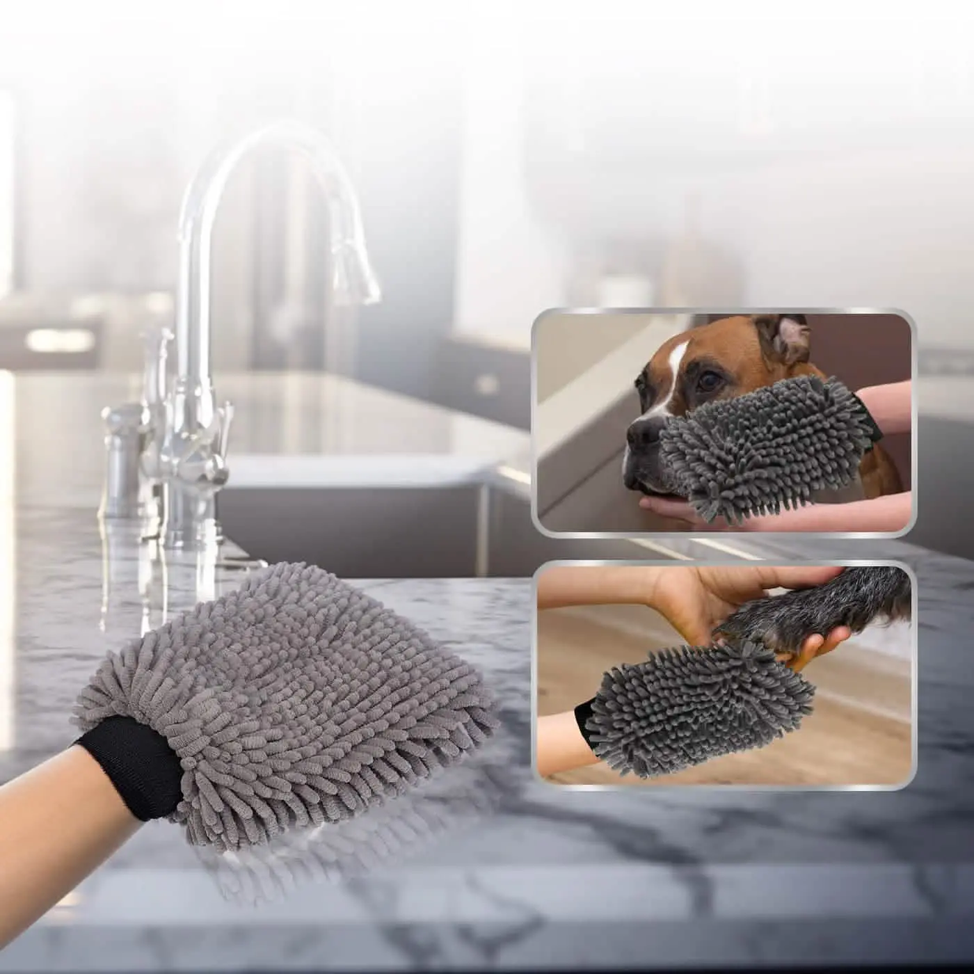 The mitts work great! The doggos come inside and we wipe their paws before they come in the house.