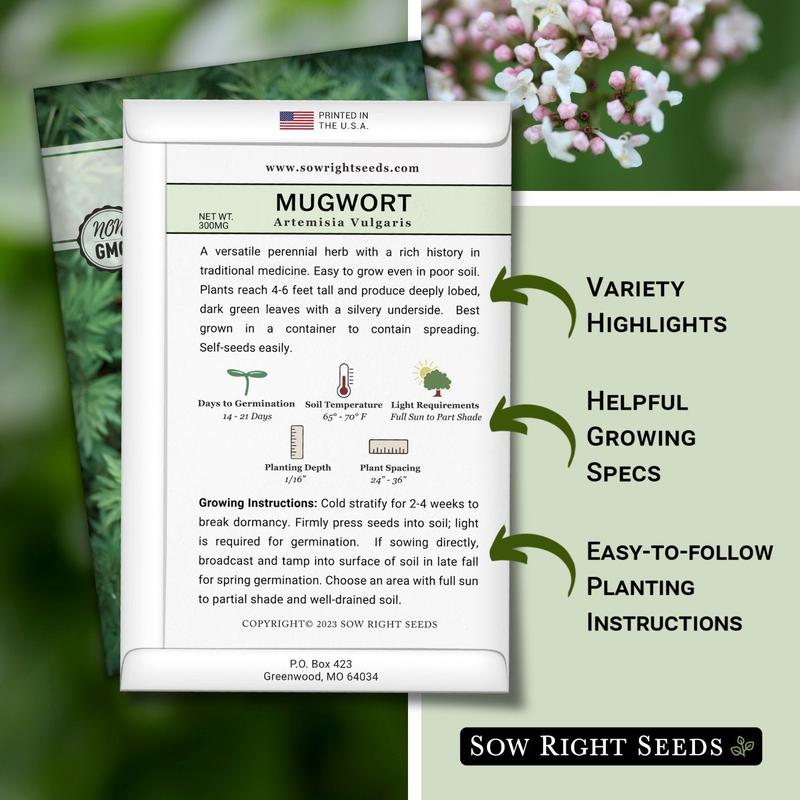 Seed packet contains 300mg (about 2700 seeds). Start Mugwort seeds indoors for early blooms - Large, premium seed packets give instructions on how to grow and when to plant outdoors.