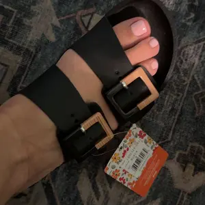 Comfortable and cute slip on sandals. I wear a size 7 normally and I had to tighten the straps on these shoes to make sure they stayed on.