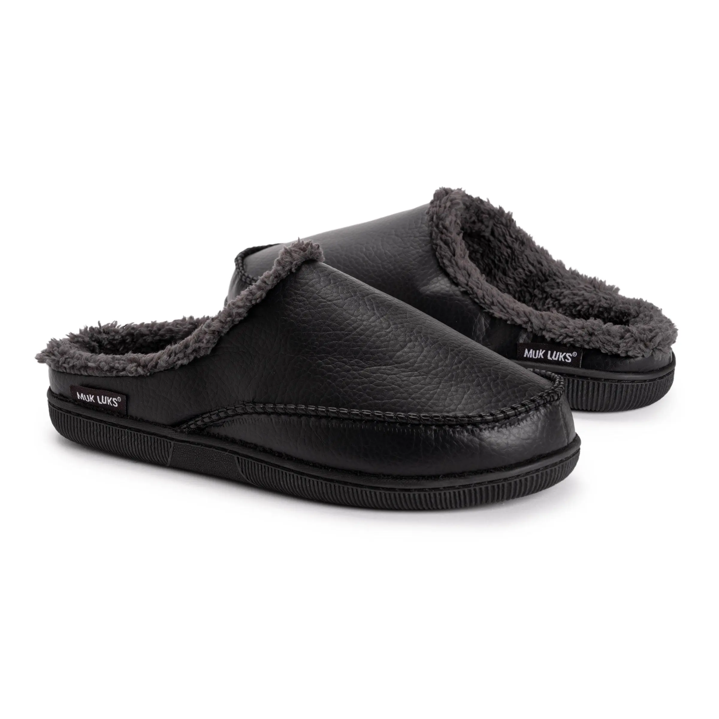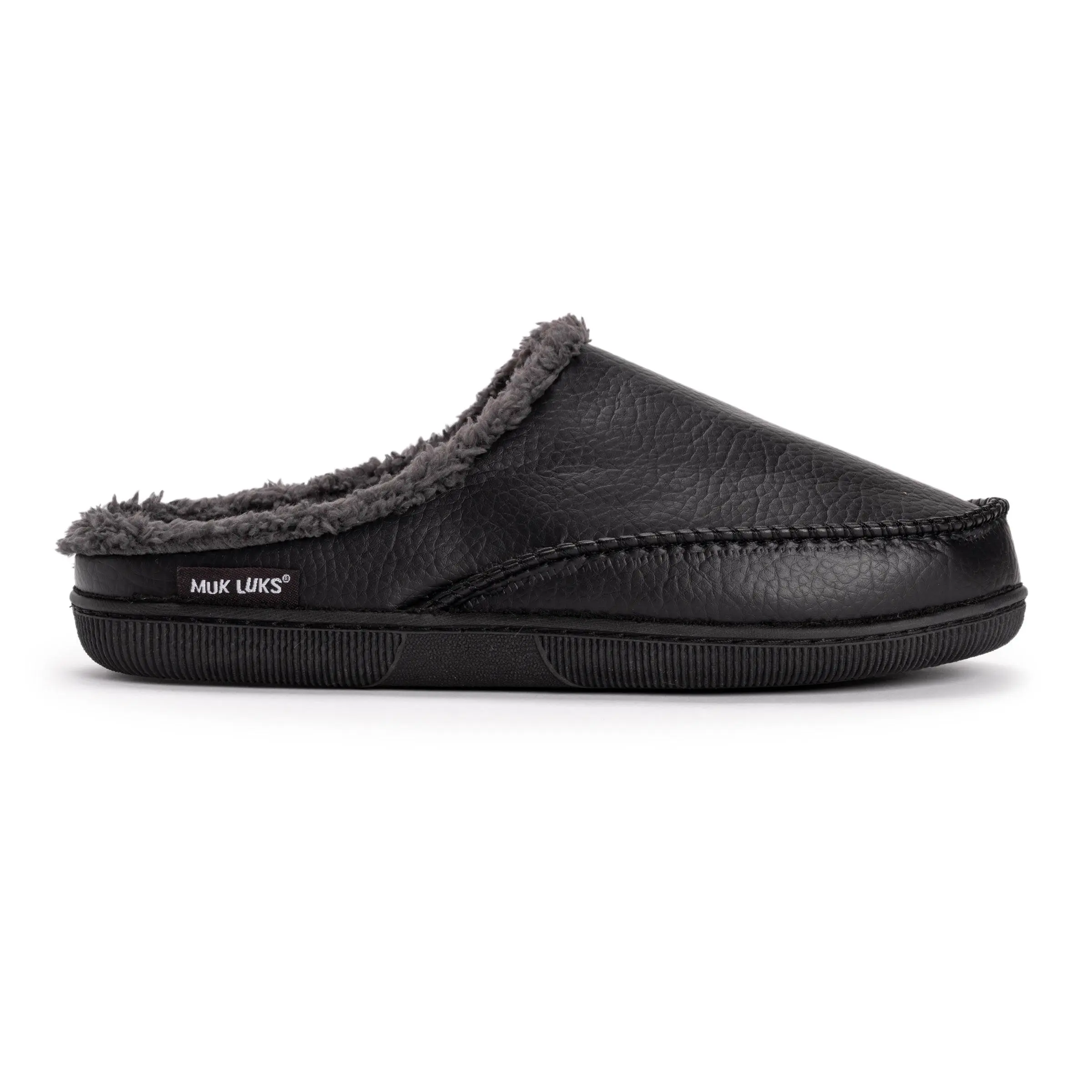 Relax like a pro in MUK LUKS® Men's Faux Leather Clog Slippers. Featuring a cozy foam insole, durable indoor/outdoor sole and stylish faux leather look, these slippers let you relax in comfort and style. Wipe with damp cloth, Dry Flat, Do not Bleach. Imported.