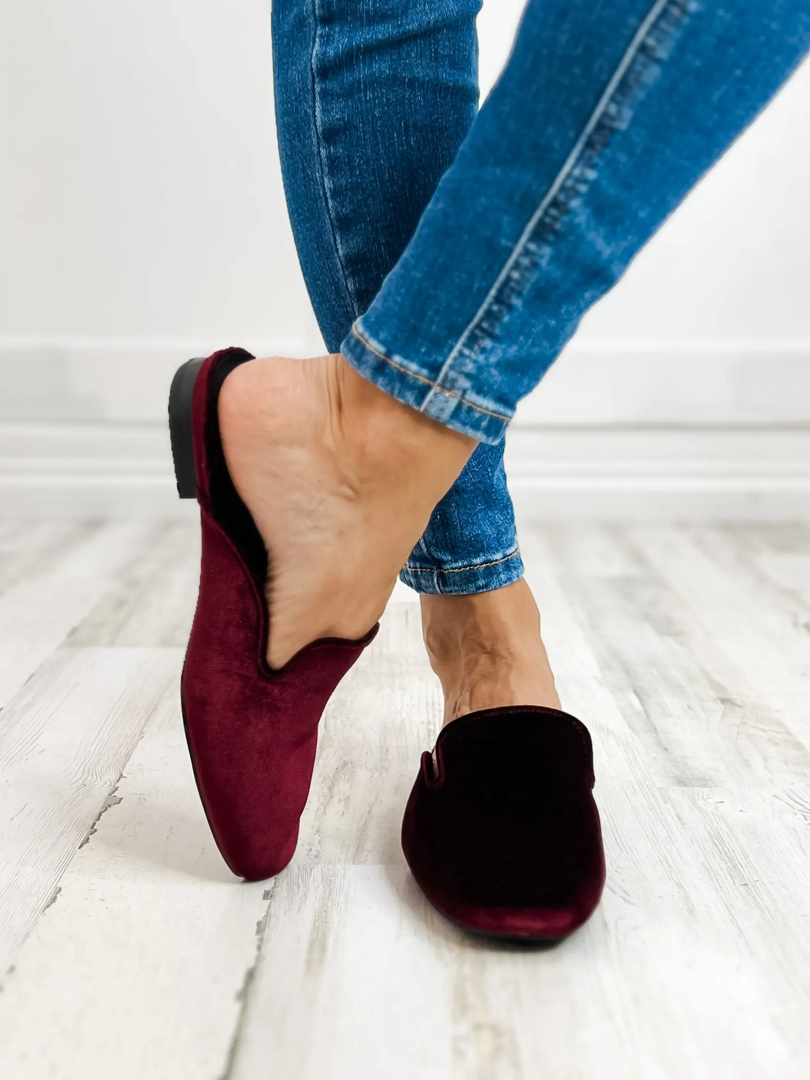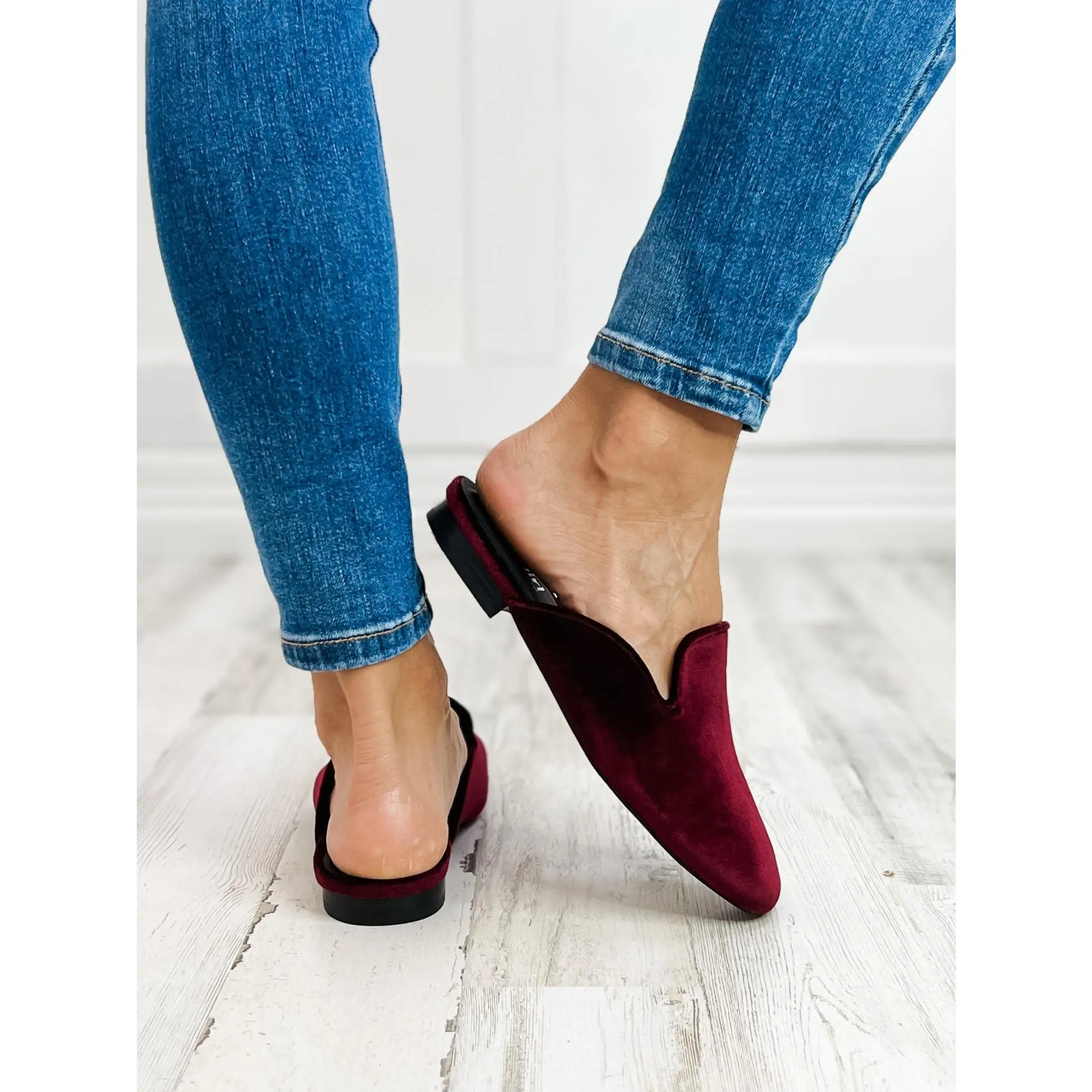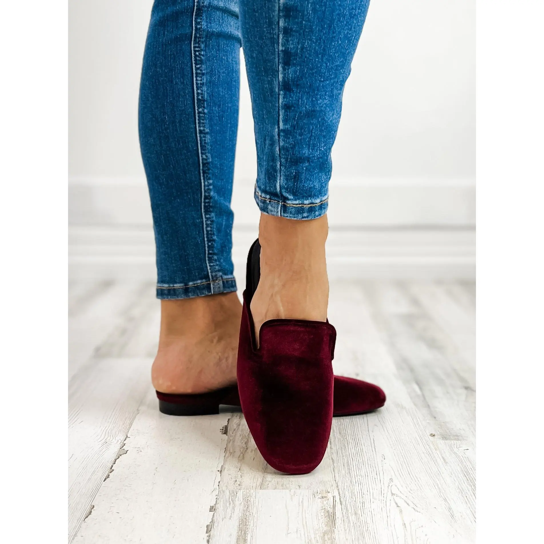 5. Corkys Spotlight Slip On Mule Shoes in Burgundy Velvet