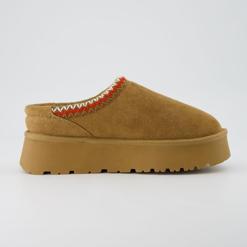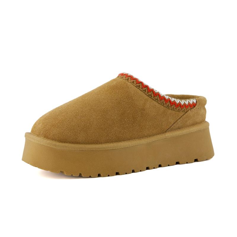 Meet Kabuki, a slip-on mule with the perfect blend of cozy comfort and modern style. Featuring a soft genuine suede upper, this mule is designed to keep you feeling snug while looking effortlessly chic. The cushioned memory foam insole cradles your feet, providing unparalleled support for lounging at home or stepping out for errands. With a bold 1.5-inch platform outsole, Kabuki offers a trendy lift while maintaining lightweight ease and traction. Its sleek silhouette is complemented by intricate stitch detailing around the collar, adding a touch of artisanal charm to your everyday wardrobe.