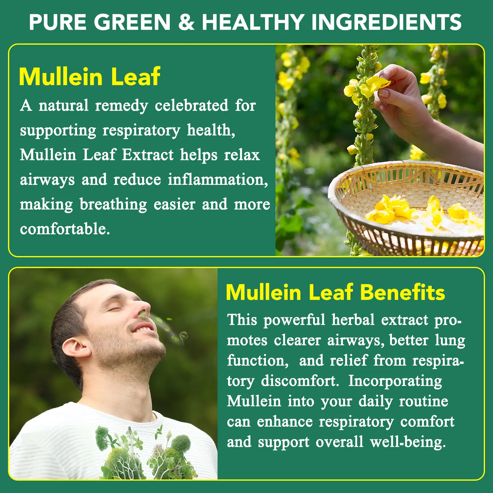 ·[Natural Formula] Our Lung Support supplement contains Mullein Leaf Extract for Lungs, is made with vegan ingredients, is GMO-free, and contains no artificial colors to help you breathe easier and support overall lung health.
