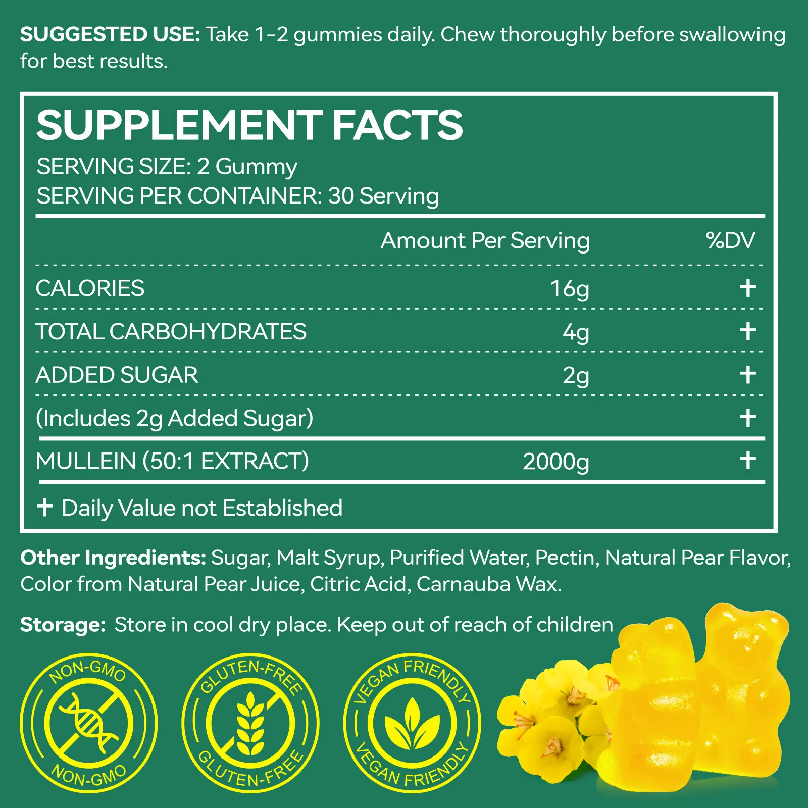 I was very excited to get the Mullen gummyâs. I have been on oxygen three years. My biggest problem is phlegm. I had my first two gummyâs today without coughing very hard. I was able to get phlegm with ease. I think it was because of the Gummies, Iâm glad toget to try those. Maybe I can breathe.