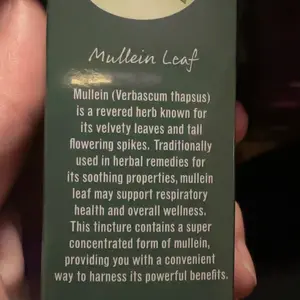 ·DAILY RESPIRATORY WELLNESS- Time-tested properties of Mullein Leaf Tincture help your body's natural mucus-clearing processes, promoting clearer airways and reduced mucus production. Breathe in with confidence and experience the freedom of easier, unhindered respiration.