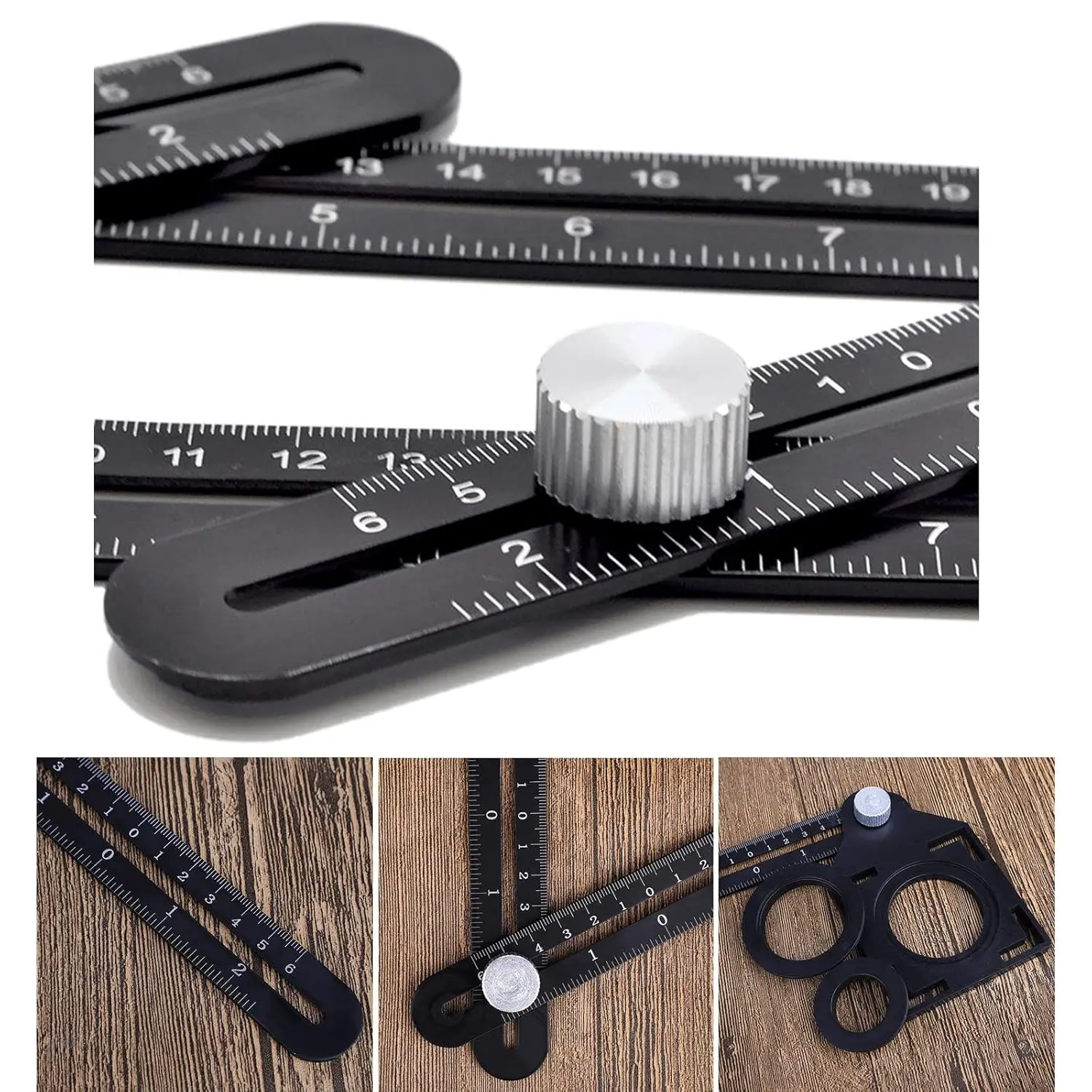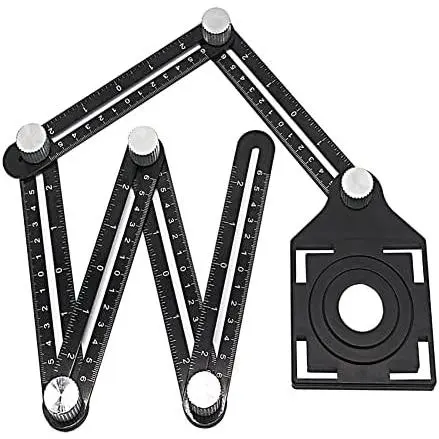 Multi Angle Ruler and Layout Tool : This angle layout measuring ruler has 6 ruler, 6 metal knobs, with a tile positioning hole opener. Put the ruler in your work area, adjust the six metal knobs to create the desired shape accurately, then tighten the knobs, then transfer the template to the material you need to cut, and you will find the position to drill the correct hole.
