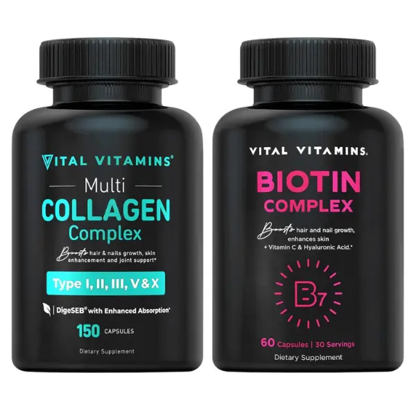 #VitalVitamins #BeautyBundle #CollagenComplex #BiotinBoost #HairSkinNails #GlowingSkin #DailyWellness #CollagenForWomen #CollagenForMen #HealthyHairJourney #AntiAgingSupport #MadeInUSA
