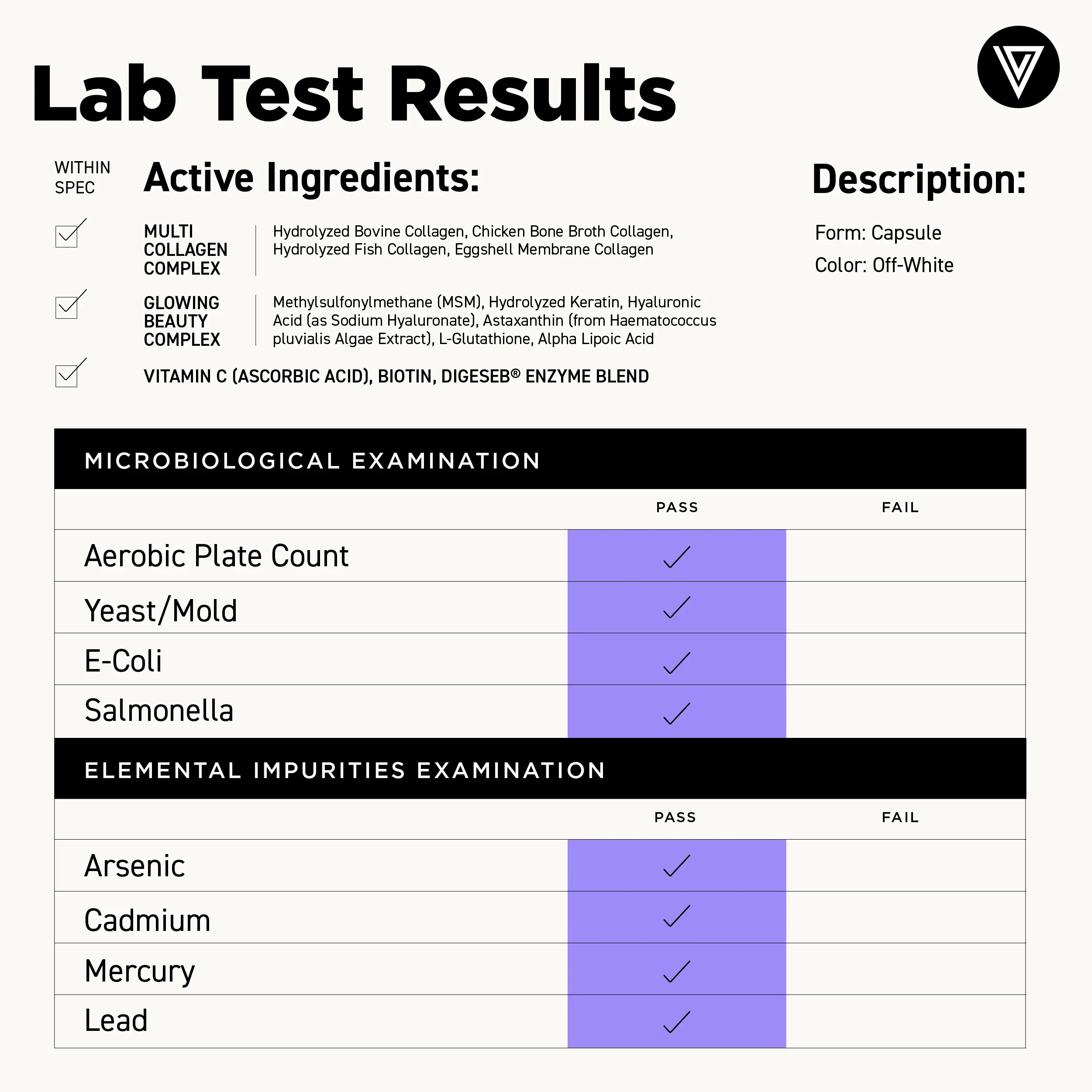 ·Multi Collagen Complex: 1,600 mg Types I, II, III, V, X Hydrolyzed Collagen