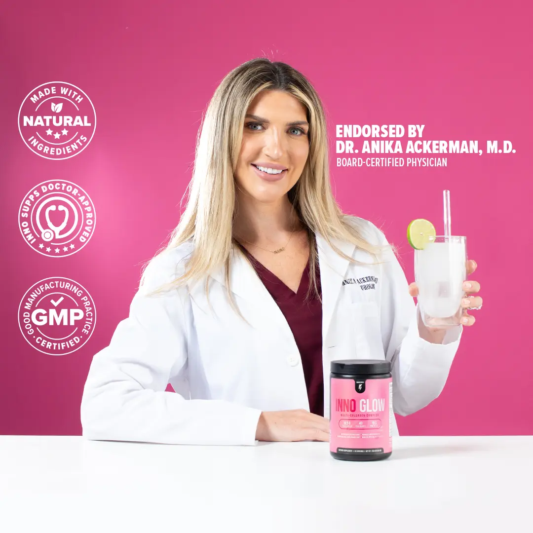 Proudly Made in the USA in a GMP-certified facility, Inno Glow offers a reliable, premium quality solution for those focused on maintaining a vibrant, healthy appearance.