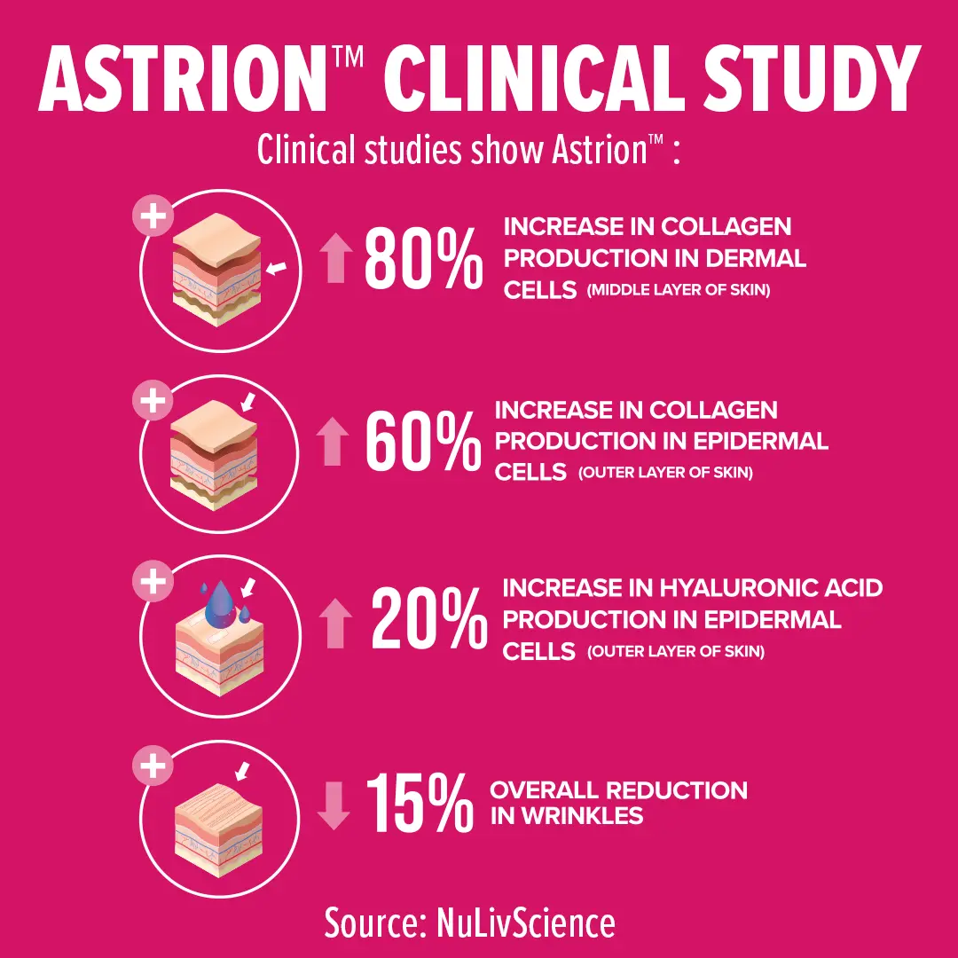 ·Astrion: Clinically proven to enhance collagen production, reducing fine lines and wrinkles for a youthful glow.