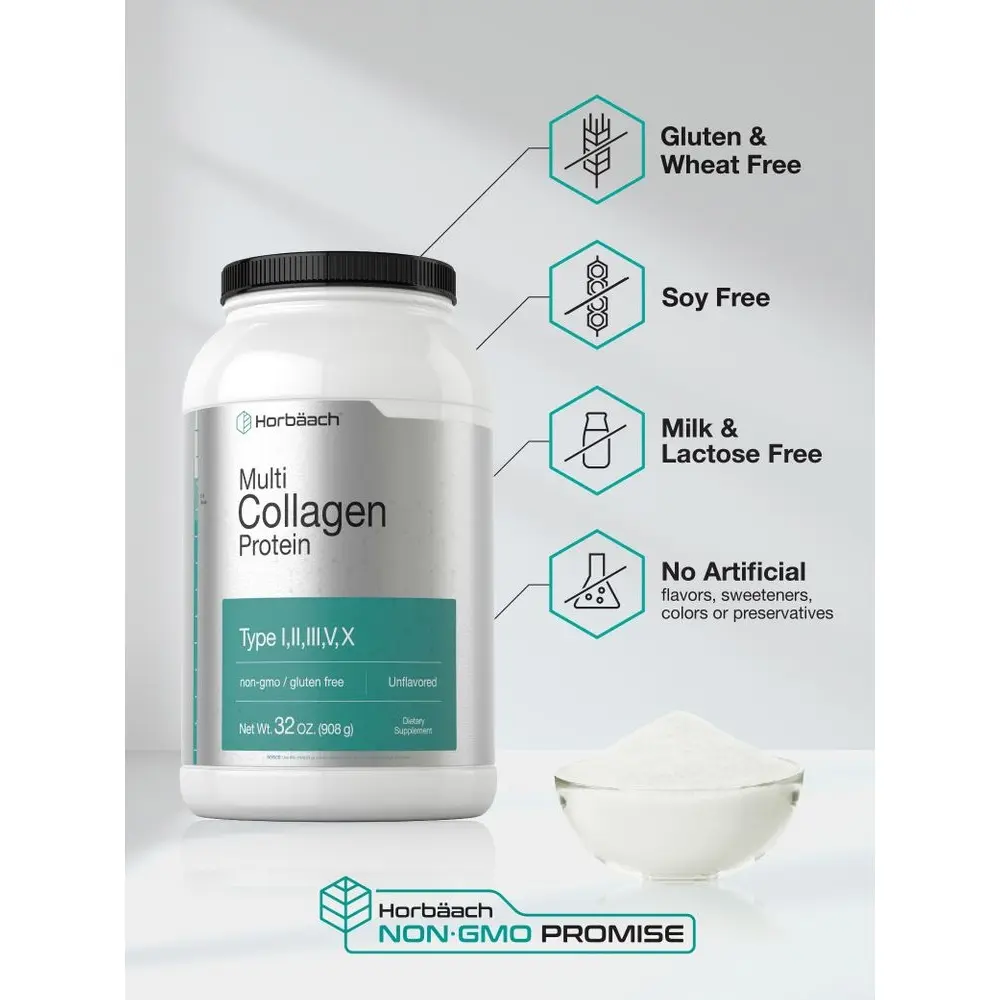 Horbaach has used years of industry experience to craft a super Multi Collagen Protein Powder. Our premium formula contains a deep profile of vital nutrients with 5 types of Collagen Peptides sourced from real whole foods. This includes Fish, Chicken, Bovine and Eggshell Membrane Collagen. Our complex Multi-Collagen powder is unflavored making it perfect for any coffee, drink, shake or baking recipe. Also, it’s Non-GMO, Gluten Free, Dairy Free and Soy Free. Our ultra powder has officially raised the bar for Collagen Innovation and is a great choice for both men and women.