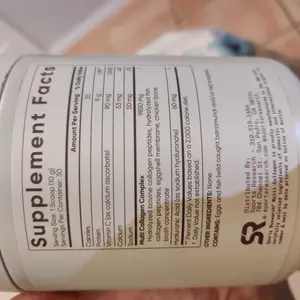 Each scoop contains 10 g of protein, 90 mg of Vitamin C, 9850 mg of Multi Collagen Complex from 4 real food sources, and 60 mg of Hyaluronic Acid.
