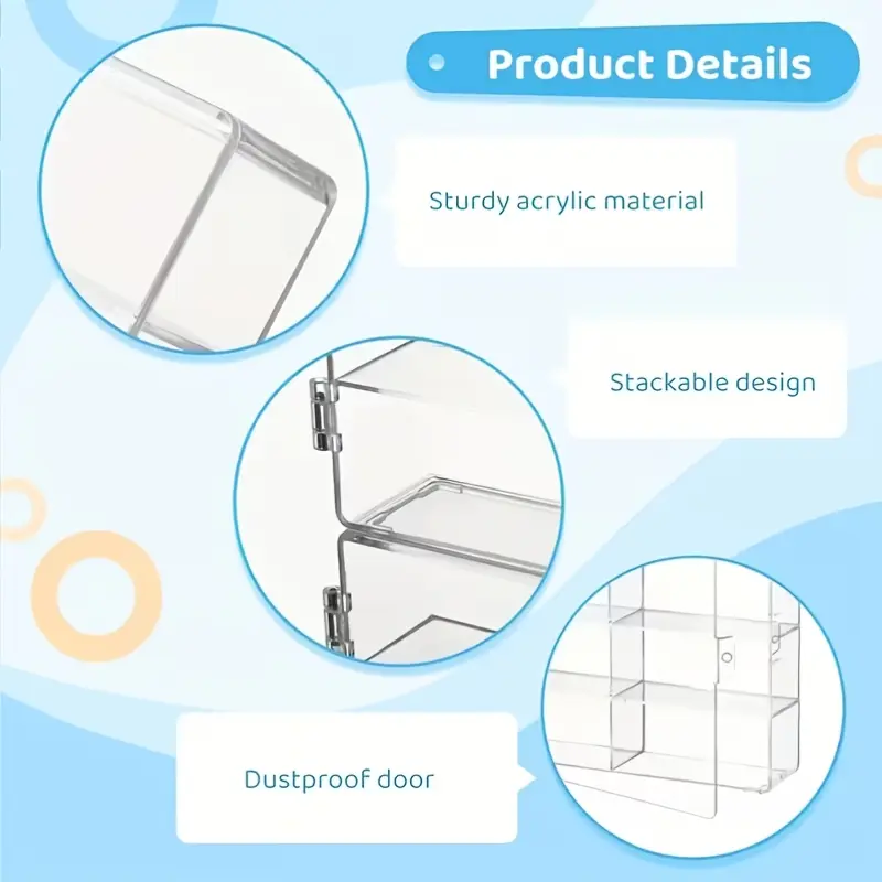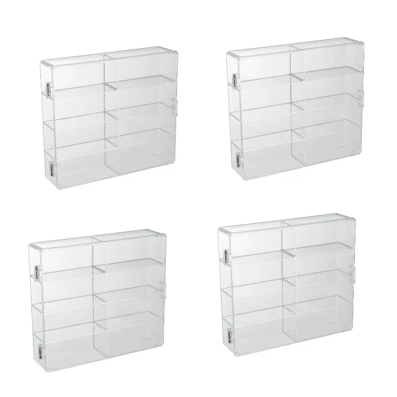 4 PCS Multi-functional 8 Compartment Clear Plastic Storage Boxes Stackable with Lids for Toys Cars Jewelry Desktop Closet Organizer Space Saving Home Office