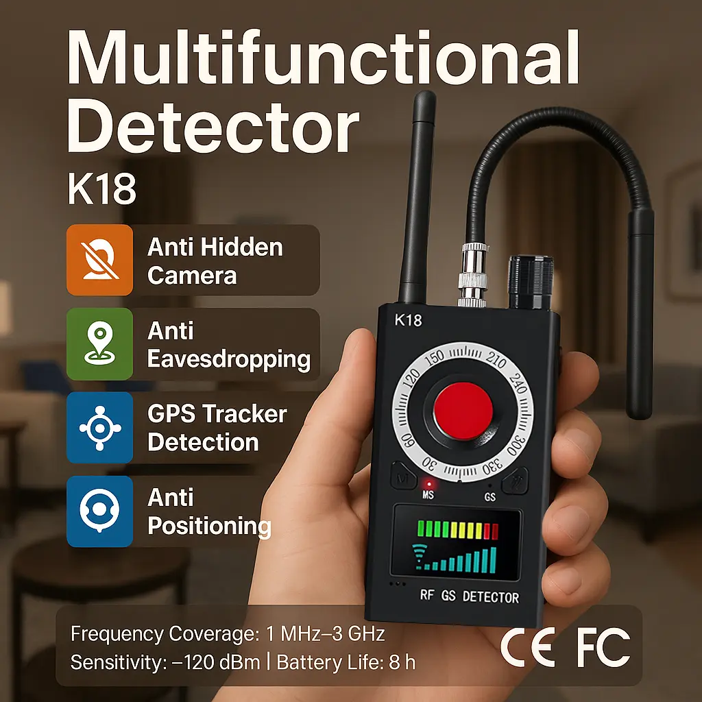 ·Powerful 3-in-1 Detection: Detects hidden cameras (wired/wireless, 1.2G/2.4G/5.8G), audio bugs GPS tracker finder with adjustable magnetic field probe (5mV/GS accuracy) Infrared lens detector to spot hidden pinhole cameras visually