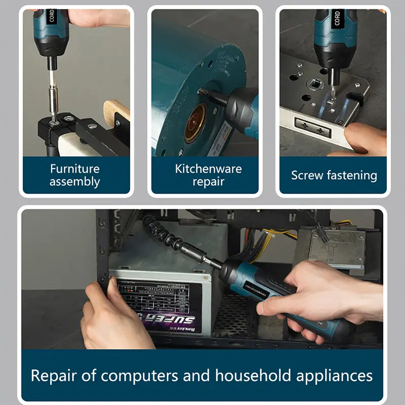 ·【Widely Application】: Different grades of torque can meet different needs, such as furniture assembly, kitchen repair, screw tightening, computer appliance repair, etc., Electric screwdrivers cordless is a good helper for home improvement, DIY.