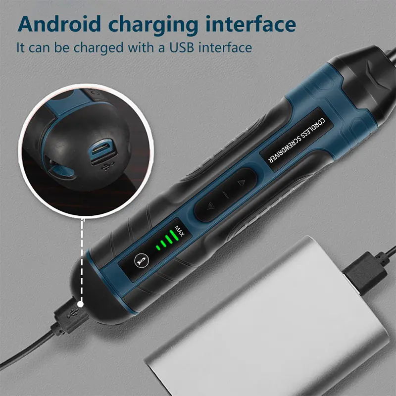 ·【Rechargeable & Anti-slip Handle】: The unique design of the soft rubber handle, which is non-slip and easier to hold. And the cordless screwdriver built-in rechargeable lithium-ion battery power supply, long-lasting performance, the small drill cordless can accept any Micro-USB charging cable.