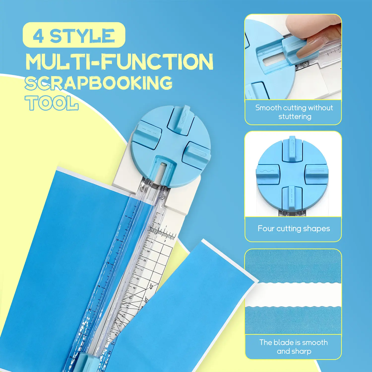Easy to Use: Its compact design makes it easy to rotate and select the cutting shape. Simply press down to quickly cut multiple sheets of paper.