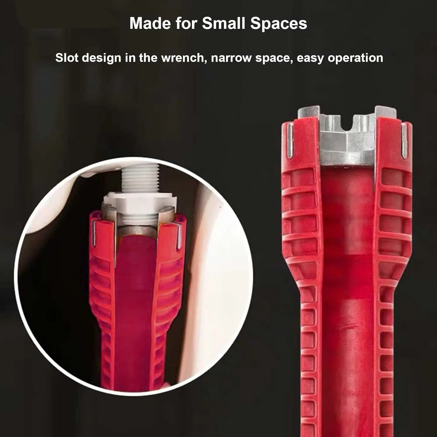 ·MULTI FUNCTIONAL SINK WRENCH: 8-In-1 Sink Wrench Is Used For Installation, Bathroom, Kitchen, And Pipes Under Sinks. Designed Specifically for Narrow Spaces, It Can Easily Reach and Operate Difficult To Reach Areas.