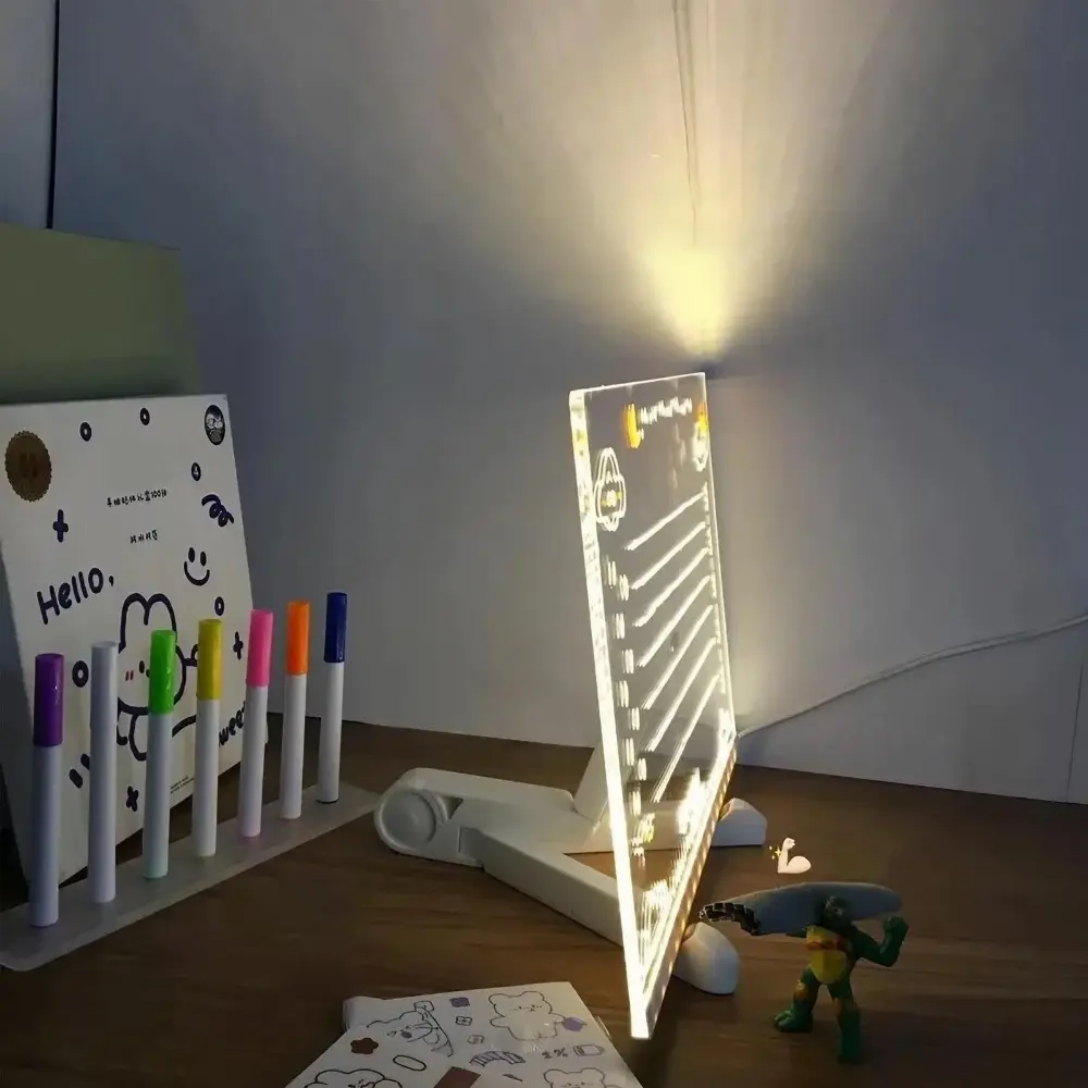 Multi-Function glowing Drawing Board desk lamp with erasable Whiteboard, Kids Creative Learning Night Light, Acrylic Memo Board, Colorful Pen Set, Fun Gift for Home Decor & Study Tools
